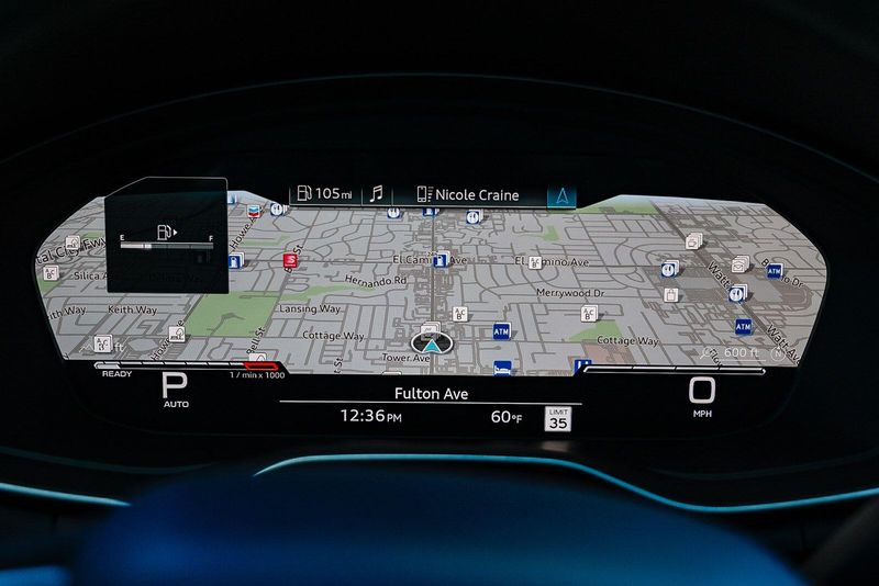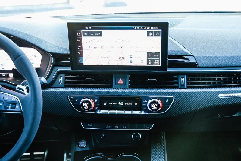 Stepping inside, you'll be greeted by a cabin that exudes luxury and attention to detail. The Pearl Nappa/Dinamica Seating Surfaces and Heated front seats ensure exceptional comfort, while the Alcantara-wrapped steering wheel, shifter, and center console add a touch of sportiness. The Navigation System, Head-Up Display, and Audi Connect PLUS keep you connected and informed, enhancing your driving experience.