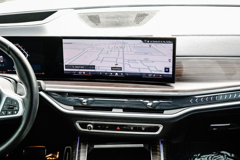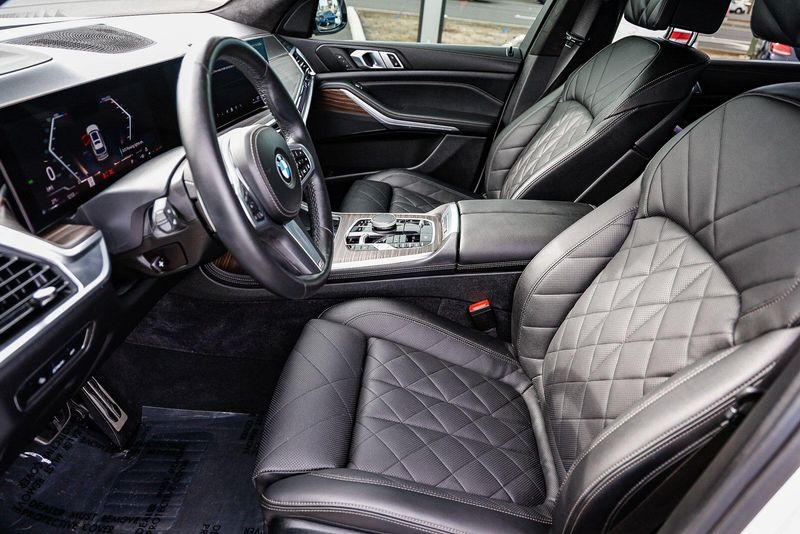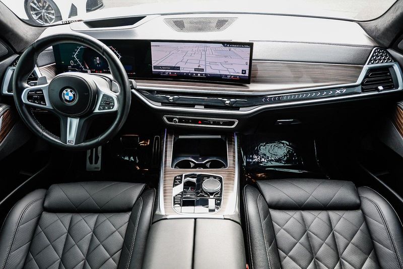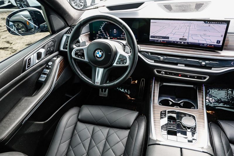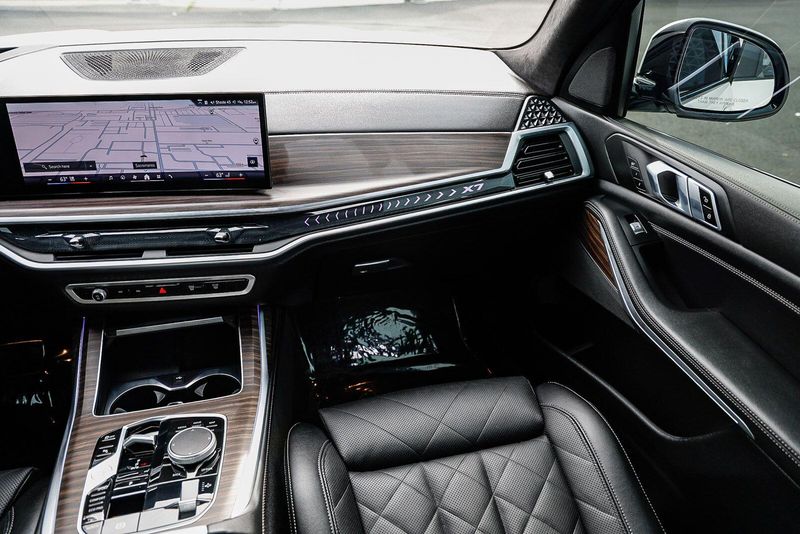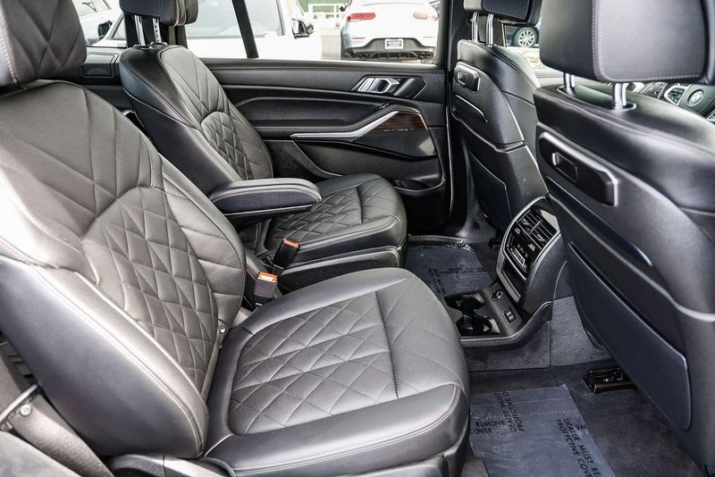 Step inside and be captivated by the luxurious Sensafin upholstery, genuine wood accents, and the refined ambiance that sets the BMW X7 apart. The spacious interior offers ample room for up to seven passengers, with available second-row captain's chairs for exceptional comfort.
