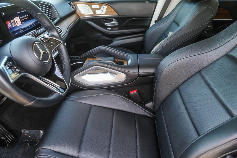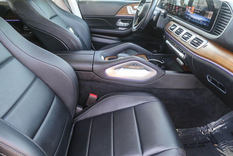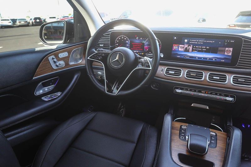 The interior of this GLE is a true sanctuary of luxury and technology. The MBUX infotainment system with its 12.3'' touchscreen display puts a world of connectivity and entertainment at your fingertips, while the Burmester Surround Sound System with Dolby Atmos delivers an immersive audio experience. Heated and ventilated front seats, a heated steering wheel, and a panoramic sunroof further enhance your comfort and enjoyment.